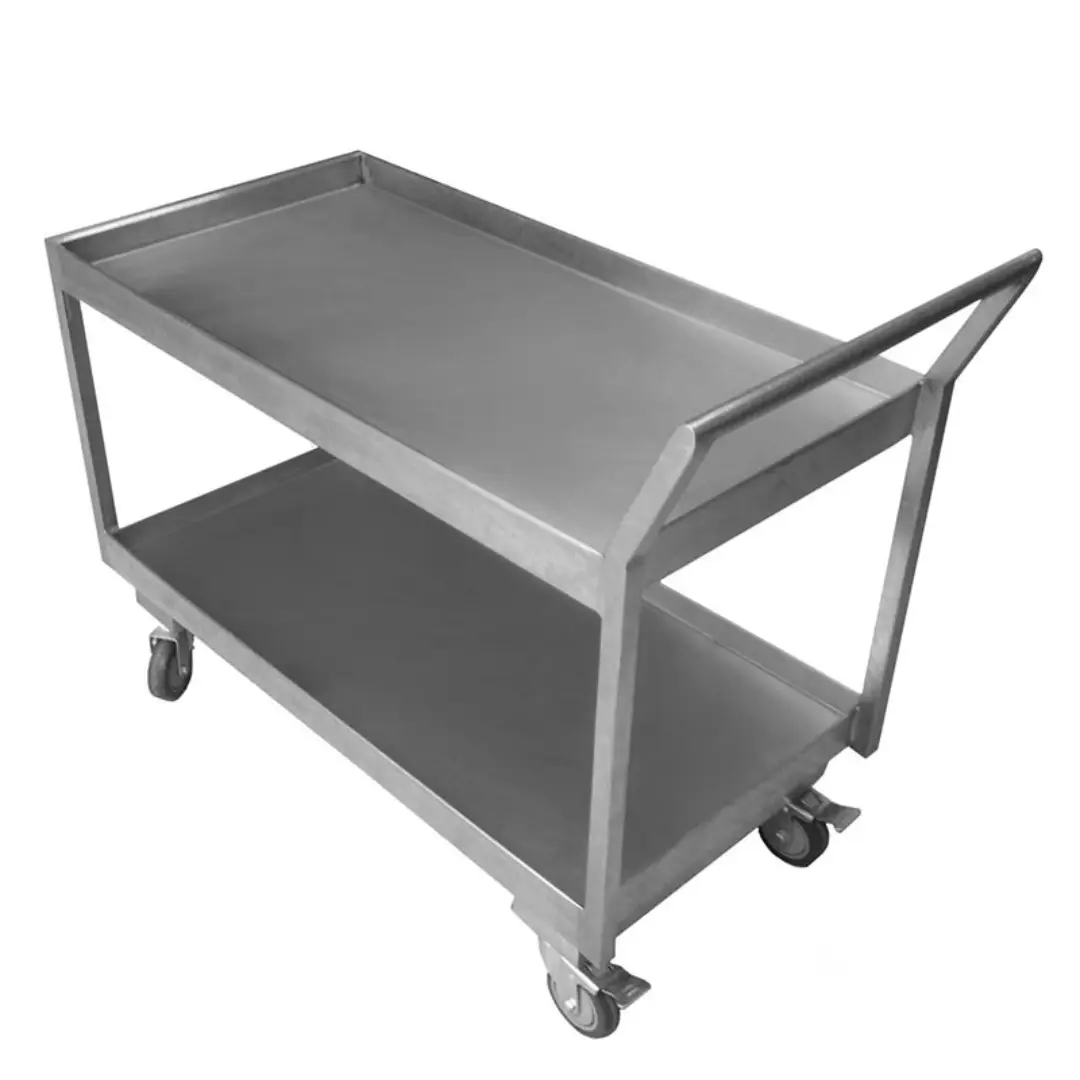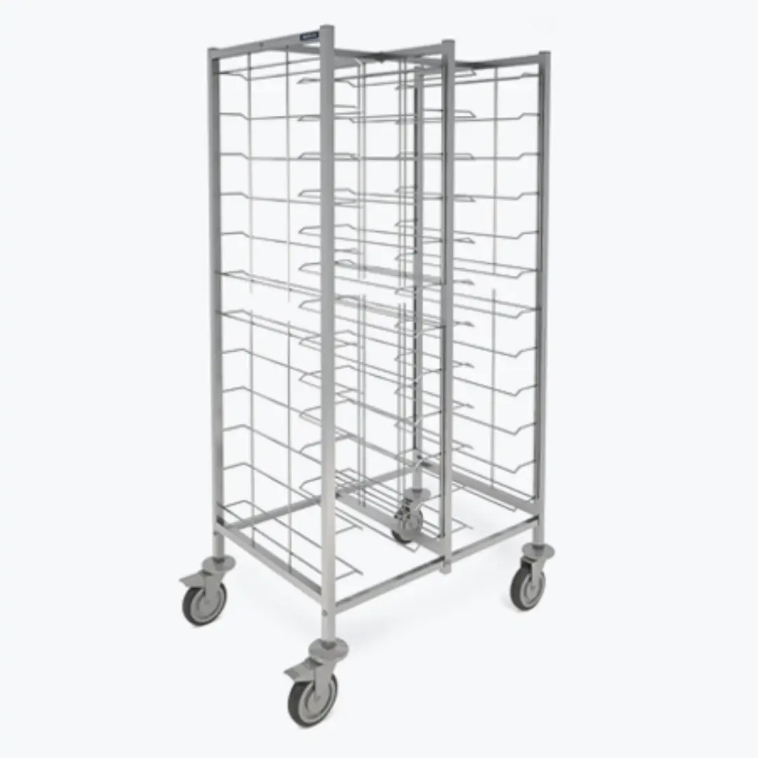 Carro de transporte multifuncional diseñado para el manejo seguro y eficiente de bandejas, alimentos y utensilios en cocinas comerciales, panaderías, catering y hospitales.