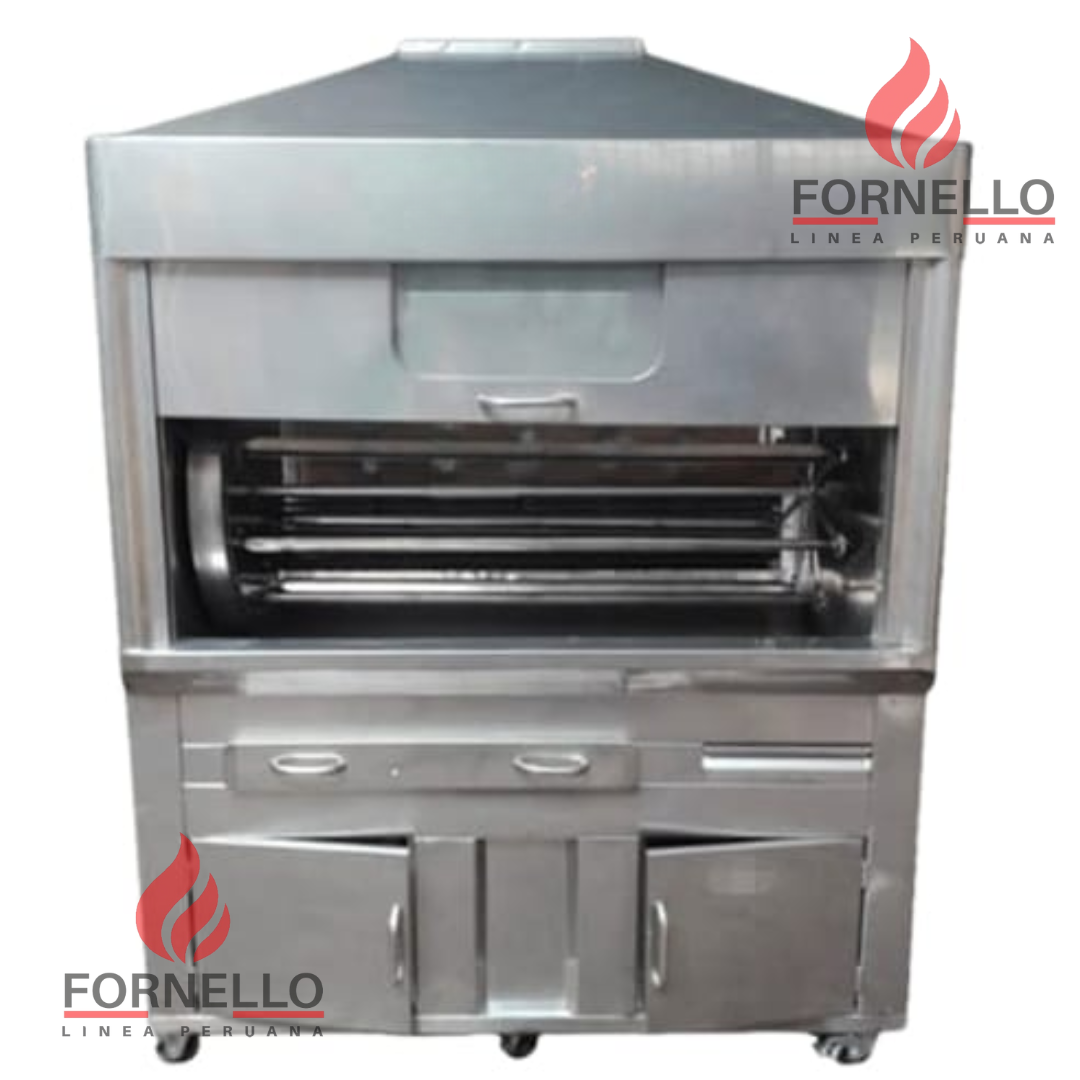 Nuestro horno pollero a carbón está diseñado para satisfacer la alta demanda de pollerías y restaurantes especializados. Con capacidad para 36 o 48 pollos, este equipo combina eficiencia energética con resultados excepcionales.